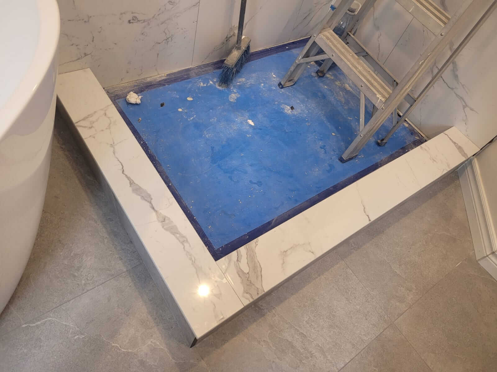 Our certified installers completed the transformation over ten days. They installed Ditra underlayment, embedded heating cables strategically, laid large-format tiles with precision, waterproofed the shower enclosure, installed wall tiles flawlessly, and finished with bathtub and fixture installation. Every detail executed to perfection.